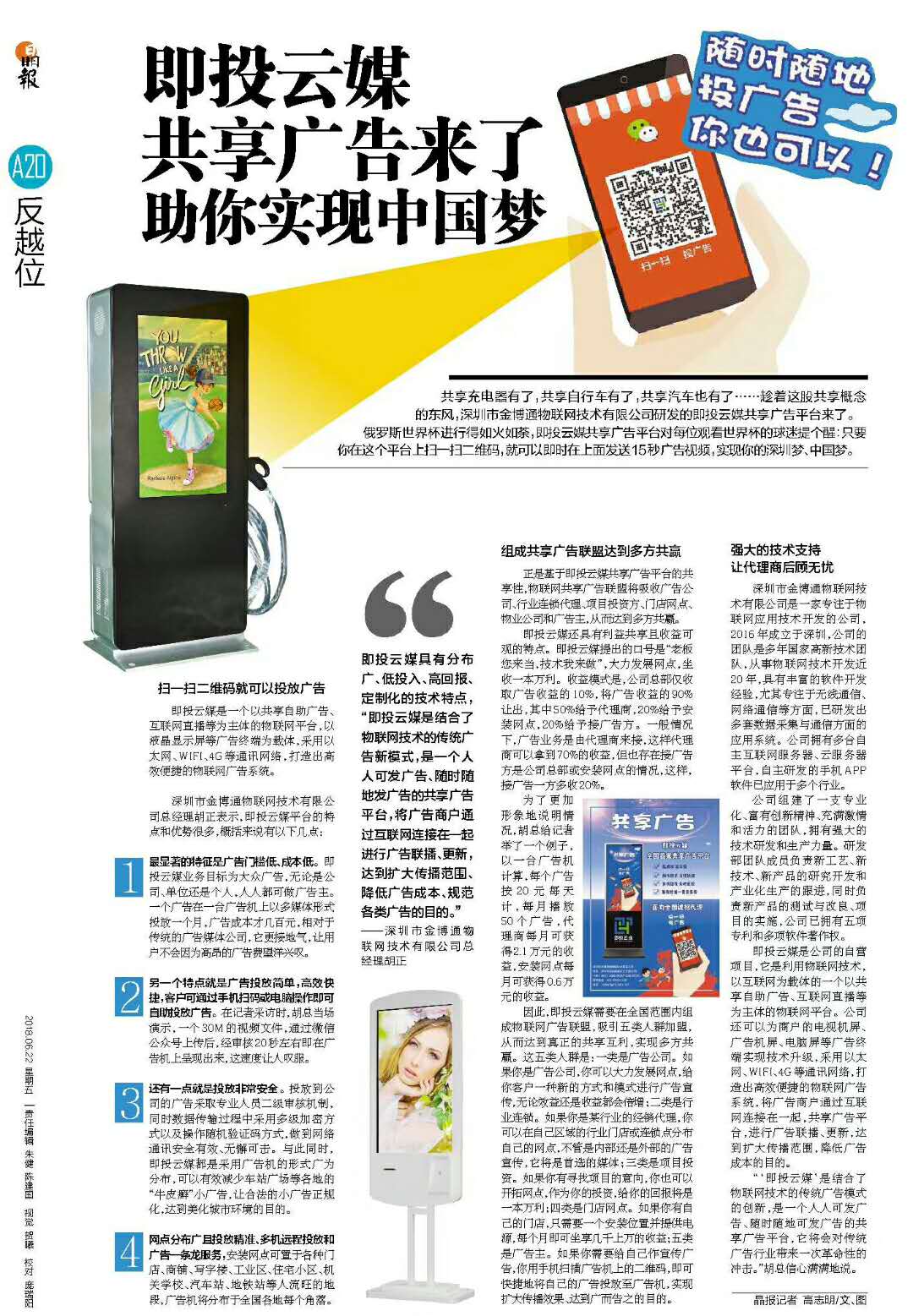 6月22日《晶報》用了一個整版,以《即投云媒共享廣告來了