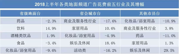 從各類地面頻道的廣告花費前五行業(yè)數據來看,省級地面臺的藥品、飲料、酒精類排在前三,省會城市臺和其他市縣臺商業(yè)及服務性行業(yè)、化妝品/浴室用品排在前三位置。所以總的來講地面臺以及區(qū)域臺更主要還是以區(qū)域化的品牌為主,這是大家的經營現狀,更多的是來自于商業(yè)服務性行業(yè),娛樂休閑、活動類等等收入。對于各類地面臺來說,大品牌的收入已經被上一層的媒體覆蓋掉,現狀就是區(qū)域臺更多的是傾向于服務區(qū)域商業(yè)