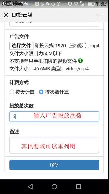 選擇“按次數(shù)計(jì)算”,輸入廣告投放次數(shù)。