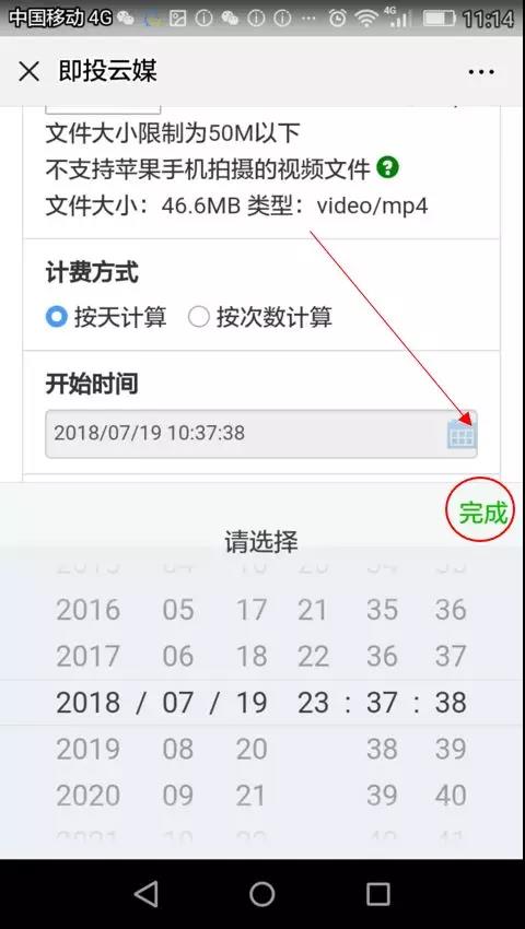 選擇“按天計(jì)算” 點(diǎn)擊日期圖標(biāo)設(shè)置廣告投放時(shí)段及天數(shù)。