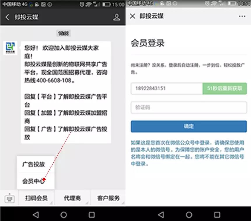 點(diǎn)擊“掃碼會員/會員中心”進(jìn)入登錄頁面,首次登錄,輸入手機(jī)號獲取驗(yàn)證碼注冊入系統(tǒng)。