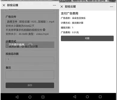 有其他要求可在“備注”框里說明,點(diǎn)擊“保存”按鈕發(fā)送下單廣告請求后進(jìn)入付款頁面,付款提交廣告投放訂單。