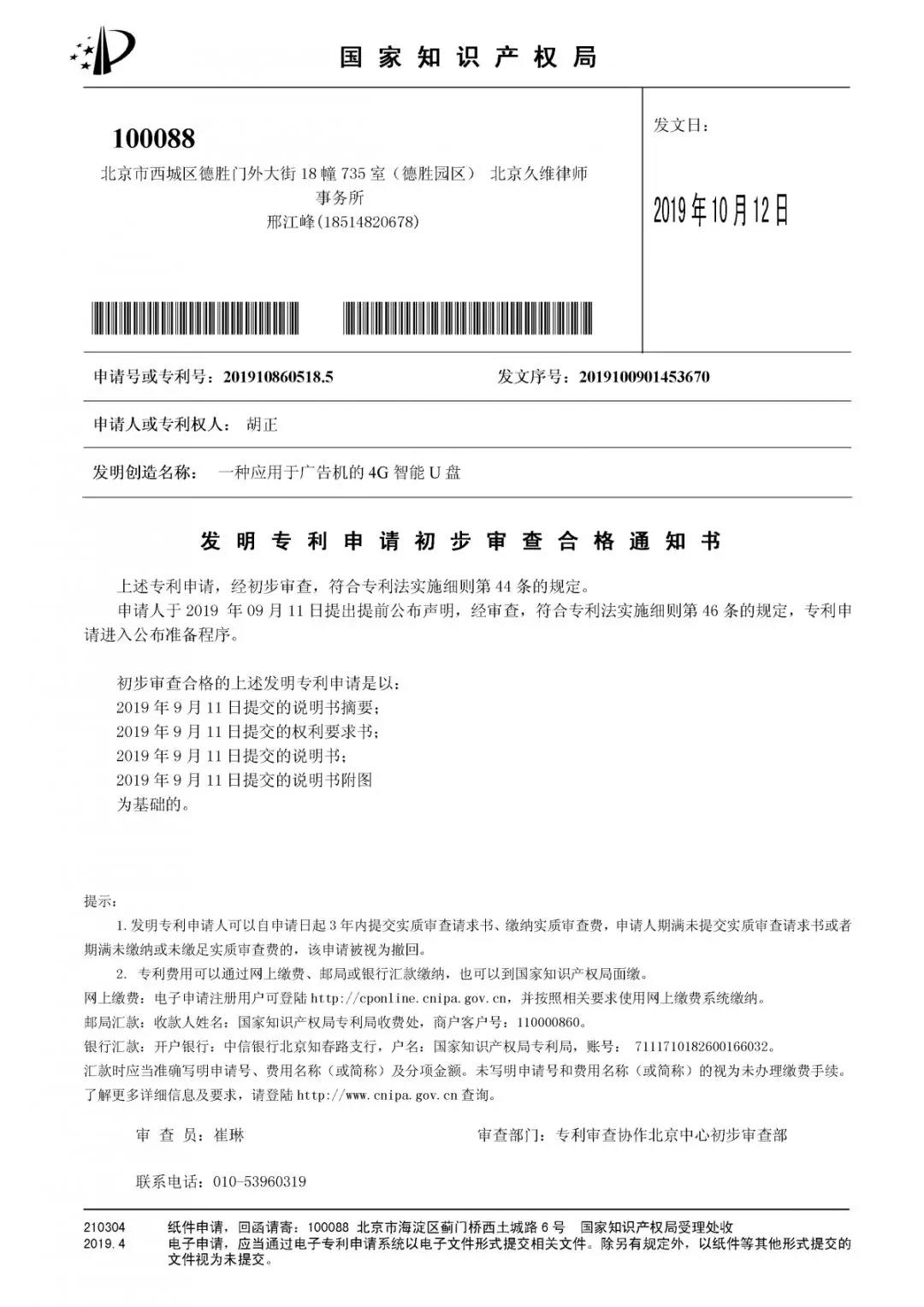 目前,KB802廣告機智能物聯(lián)網(wǎng)盤憑借自身明顯的優(yōu)勢,已經(jīng)獲得了發(fā)明專利申請初步審查合格通知書,這是對4G智能廣告機創(chuàng)新實力、綜合實力的肯定。